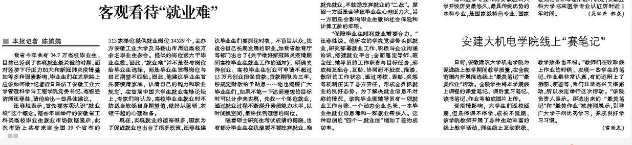 编者按:近日,我校机电学院为促进线上教学期间教学质量,在全院范围内开展推选线上“最美笔记”“最美作业”活动。4月17日,安徽日报对此进行了报道。