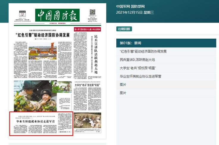 【媒体建大】中国国防报、中国国防部、安徽教育网:毕业生怀揣就业协议走进军营