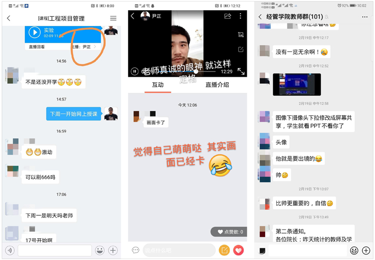 对于很多教师来说,化身“网络主播”实属从教生涯的第一次。为确保按期保质开课,经管学院全体教师加班加点,“恶补”突击,很多老师从外行变成了内行,从“技术盲”成长为“技术流”。不仅能够熟练掌握一个教学平台,而且能够在不同教学平台间任意切换,多渠道协同配合,保证线上教学效果的落地落实。与此同时,老师们也经常在工作群中分享做“网络主播”的经验趣事,积极探索、群策群力,经过几周的不断调整,目前线上教学秩序井然、平稳有序。