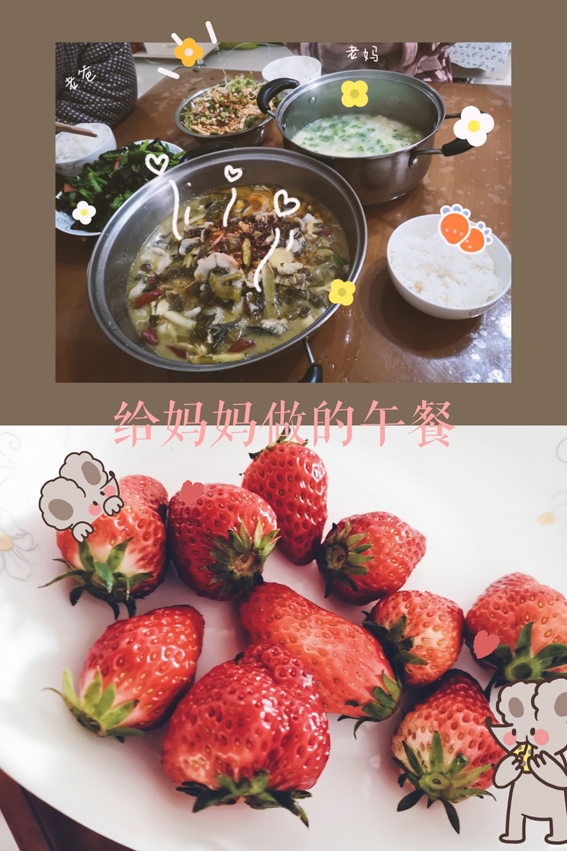 “记录”——同学们用实际行动表达心中对妈妈的爱意并通过照片形式记录下来,形式丰富多样,有帮妈妈分担家务的、有给妈妈送花的、有省下零花钱为妈妈买礼物的······同学们的爱没有规定的形式,没有华丽的包装,但却足够让母亲感动与欣慰。