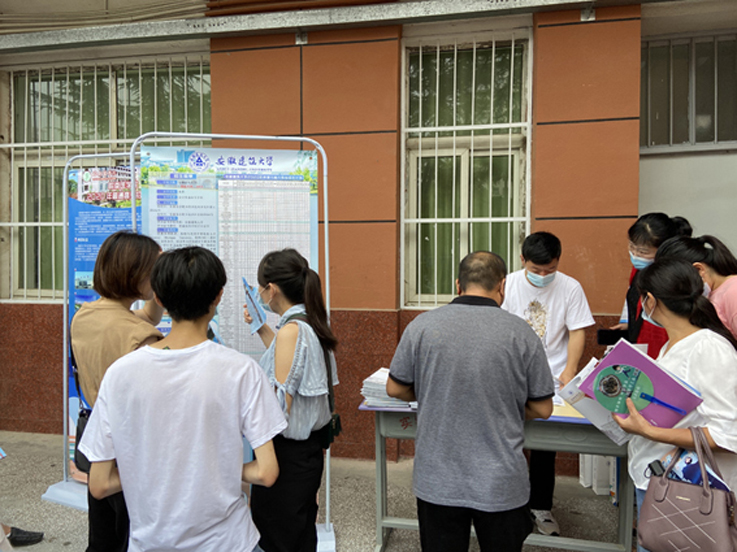 服务组工作人员通过大会宣讲、发放招生简章、现场答疑等,详细介绍我校历史沿革、发展定位、办学特色、历年招生情况和2020年招生计划等,并就招生政策、毕业去向、转专业和奖助规定、志愿填报技巧等考生家长关心问题现场进行耐心解答,活动现场反响热烈。
