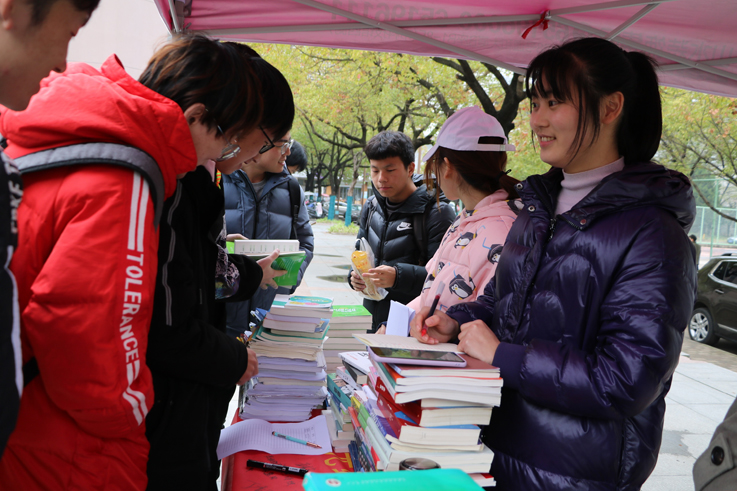 义卖活动开展当天,食堂门口吸引了众多学生前来购买。活动现场,书籍按科目分类有序摆放着,工作人员态度温和有礼并积极地向他们介绍所需要的相关书籍。整个活动共持续了四个小时,共筹集善款一千二百多元,一并捐献给了安徽省红十字基金会。
