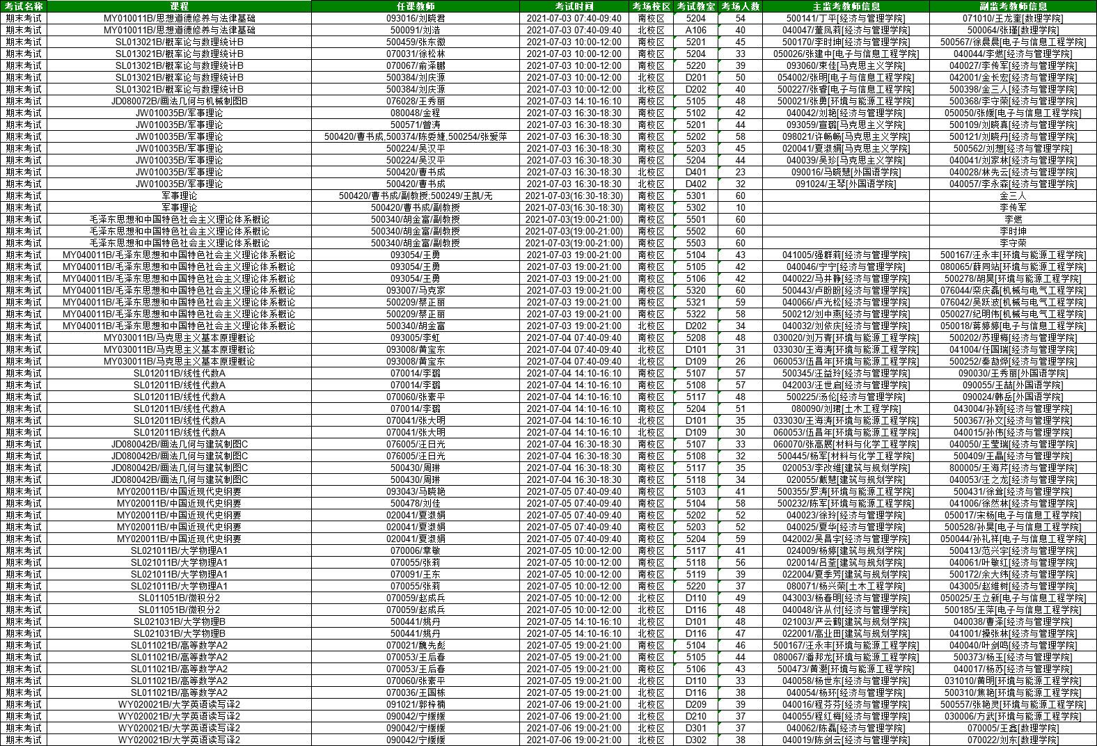经管学院20-21-2学期7月3日至7月6日监考安排补充通知
