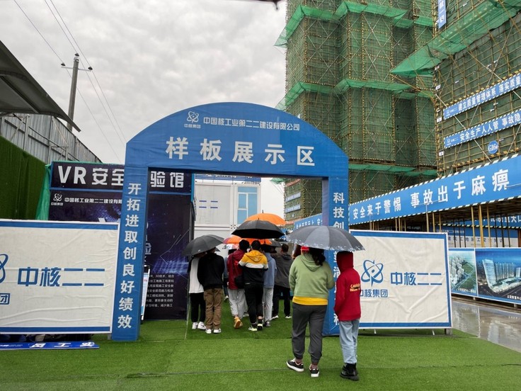 第一天,项目负责人夏世春经理陪同师生参观了位于六安东部的绿地未来城项目。他全面介绍了六安新城的未来规划,对绿地未来城项目在六安东部新城规划中的地位、项目前期策划思路、投融资遇到的问题及解决的方法进行了详细讲解。他还先后带领大家参观了未来城的样板房和施工现场。在样板房内,他向师生详细介绍未来城样板房的设计理念、房屋构造、结构布局和室内家具摆设技巧等。在施工现场,他详细介绍了整个项目的施工流程、不同工序施工进度情况,邀请师生利用VR体验整个施工工作过程,并在模拟机上学习各种相关专业知识。