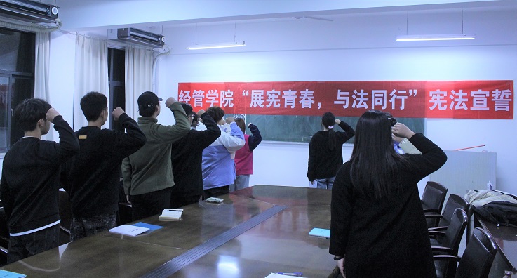 本网讯 12月4日是国家第八个“宪法宣传日”,为响应国家宪法宣传的号召,大力弘扬宪法精神,经管学院在北区F楼404教室开展“展宪青春,与法同行”国家宪法日宣传活动。