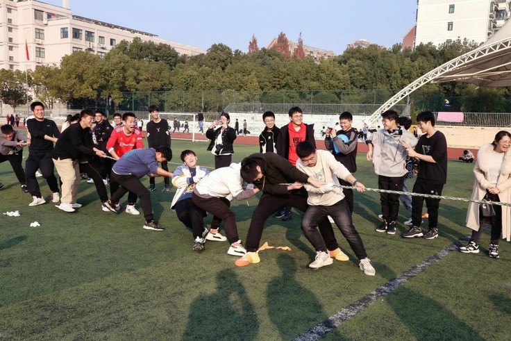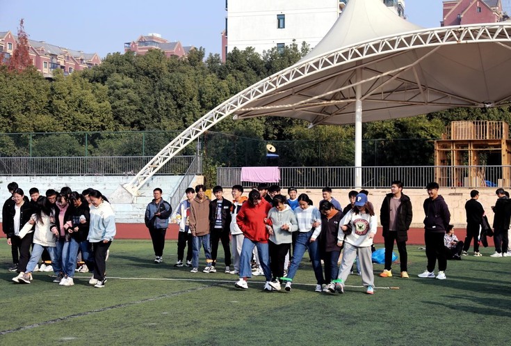 本网讯 12月9日,经管学院2021级工程管理专业在北区足球场举行趣味运动会。辅导员宁宁老师与专业87名同学参与本次趣味运动会。