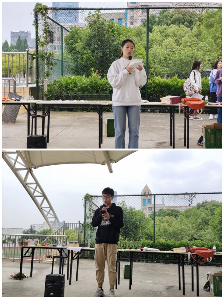 “两人三足”游戏中,两人组成一队后用绳子捆住邻近两人的脚踝,在主持人下令开始的时候跑向目标终点完成五四红图拼图,最先返回起点的队伍获胜。活动一开始,操场上面响起了此起彼伏的“一二、一二......”的口号。同学们也从一开始的小心翼翼到步伐开始逐渐加快。