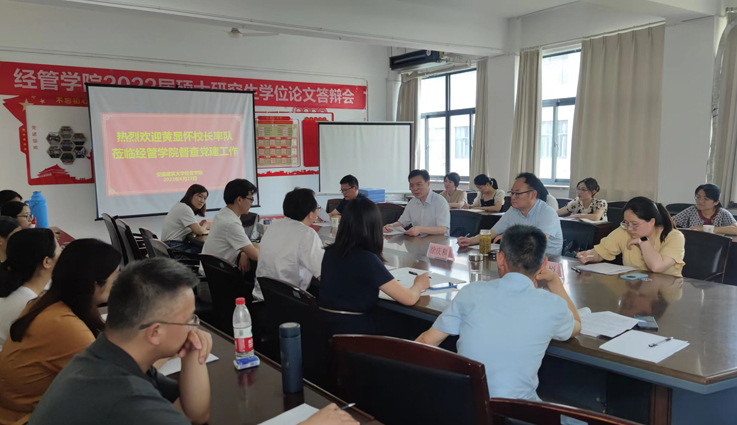 本网讯 6月27日,校党委副书记、校长黄显怀率学校党建工作领导小组成员深入经管学院开展基层党组织党建工作实地检查督查。学院领导班子成员、党委委员、党支部书记、组织员、办公室主任参加座谈。
