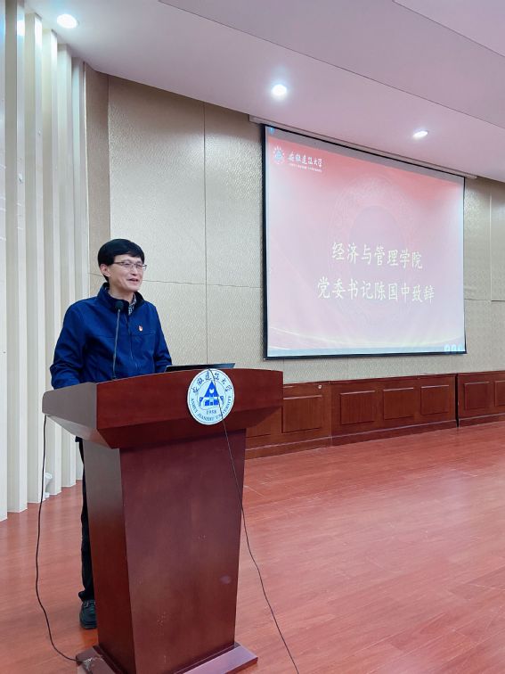 学院党委书记陈国中上台致辞,充分肯定了过去一年团委学生会所取得的优异成绩,同时也希望新一届团委、学生会、研究生会成员更加积极工作,踔厉奋发,接过前辈手中的接力棒,传承经管学院优秀精神,为广大同学服务。要加强作风建设,倾听学生心声,做好表率;要做好学院新媒体中心建设,培养网络学生骨干;要守正创新,开拓新事业,同时将既有品牌活动做到“深耕精品化”“广泛参与度”“较高知名度”。并结合学院发展规划、社团特色,对深入推进团学组织内涵式发展和建设服务型学生会提出要求。