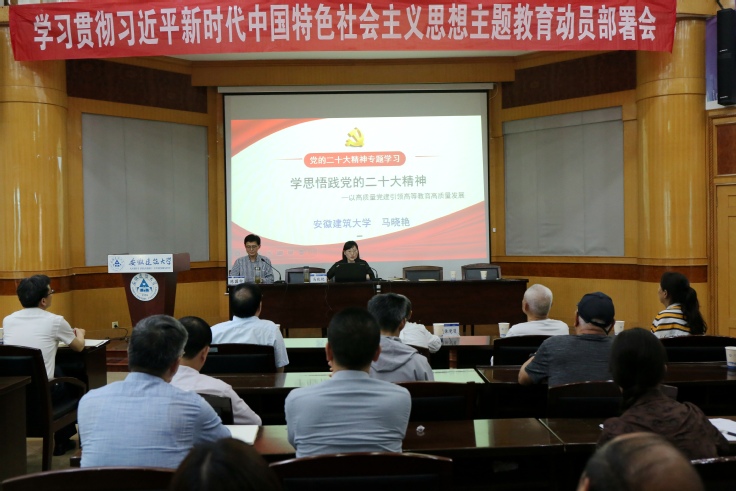本网讯 为深入学习宣传贯彻党的二十大精神,进一步提高学院师生对党的二十大精神的理解领会。4月19日下午,学院党委邀请公共管理学院党委副书记(主持)、副教授,安徽省委讲师团专家库青年宣讲名师马晓艳担任主讲,以《学思践悟党的二十大精神以高质量党建引领高等教育高质量发展》为题做宣讲报告,学院党委书记陈国中主持报告会,学院师生党员参加宣讲报告会。