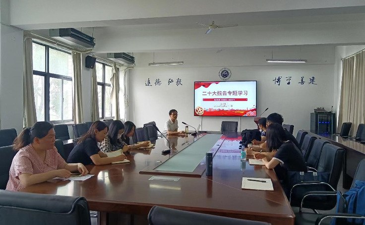 学院院长彭志胜以《踔厉奋发勇毅前行团结奋斗》为题,围绕“开辟马克思主义中国化时代化新境界”、“新时代新征程中国共产党的使命任务”和“实施科教兴国战略,强化现代化建设人才支撑”三个部分进行阐述。他结合学院的实际、学校的目标任务和科研动态阐发了对党的二十大精神的理解,号召大家对党的二十大精神学思践悟,并积极投身到学校的科研和院系建设中。