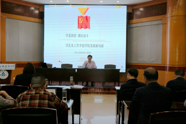 学院党委书记陈国中以《学思践悟团结奋斗真抓实干开创学院发展新局面》为题,围绕“学习习近平新时代中国特色社会主义思想的世界观和方法论”、“团结奋斗以扎实工作开创学院发展新局面”两个方面做了具体阐述,并结合学院实际从学院发展、人才培养和党的建设提出了新的工作思路,要求大家坚持学习、真抓实干、团结奋斗,共同为推进学院党建和事业发展迈上新台阶而努力。