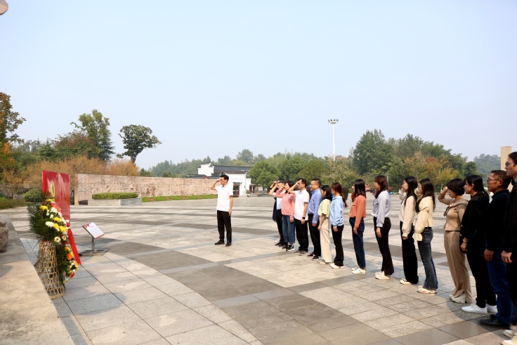 随后大家来到红源广场。瞻仰了历史丰碑柱、舒传贤烈士雕塑、大别山革命英雄群雕、大别山革命史浮雕墙。在英雄群雕前,向革命烈士敬献花篮,鞠躬默哀,表达对革命先烈崇高的敬意。重温入党誓词,再次接受红色洗礼。