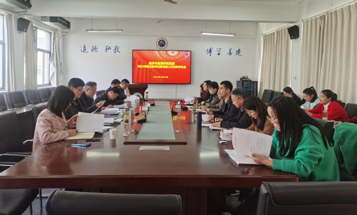本网讯 3月20日,经管学院党委在学院F404会议室召开2023年度党支部书记抓党建述职评议考核会,学校党委统战部常务副部长、长三角区域高等教育一体化示范区共建办公室主任朱涛、审计处处长黄升才到会指导。学院党委委员、各党支部书记、师生代表参加会议,会议由学院党委书记陈国中主持。