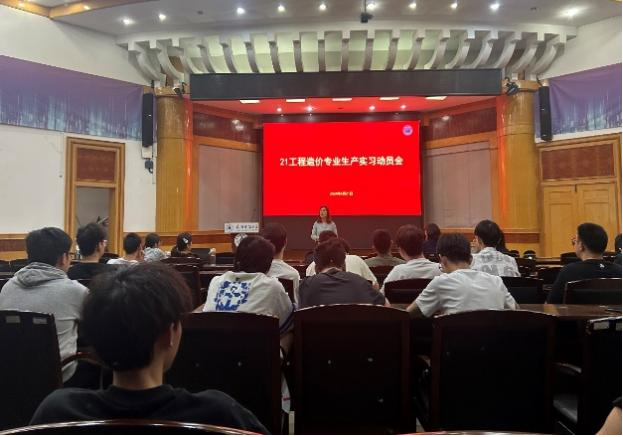 5月21日下午,21工程造价专业生产实习动员会在金寨路校区建树楼三楼报告厅召开,副院长章蓓蓓主持会议。工程系副主任马晋超详细介绍了本次生产实习的目的和活动内容,并着重强调了生产实习过程中的安全注意事项。5月22日下午,工程造价专业负责人吴正文、工程管理系副主任马晋超及部分骨干教师带队,组织学生前往生产实习地点。