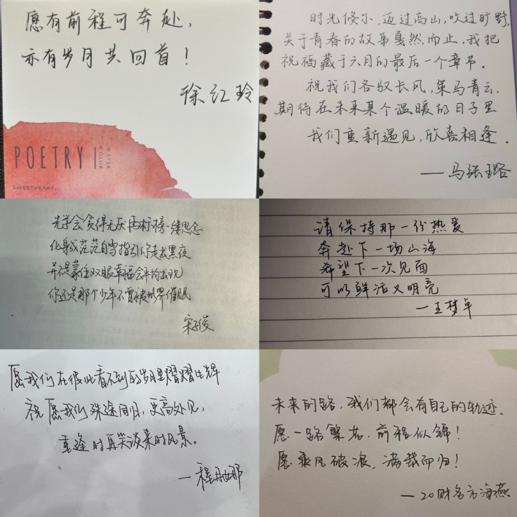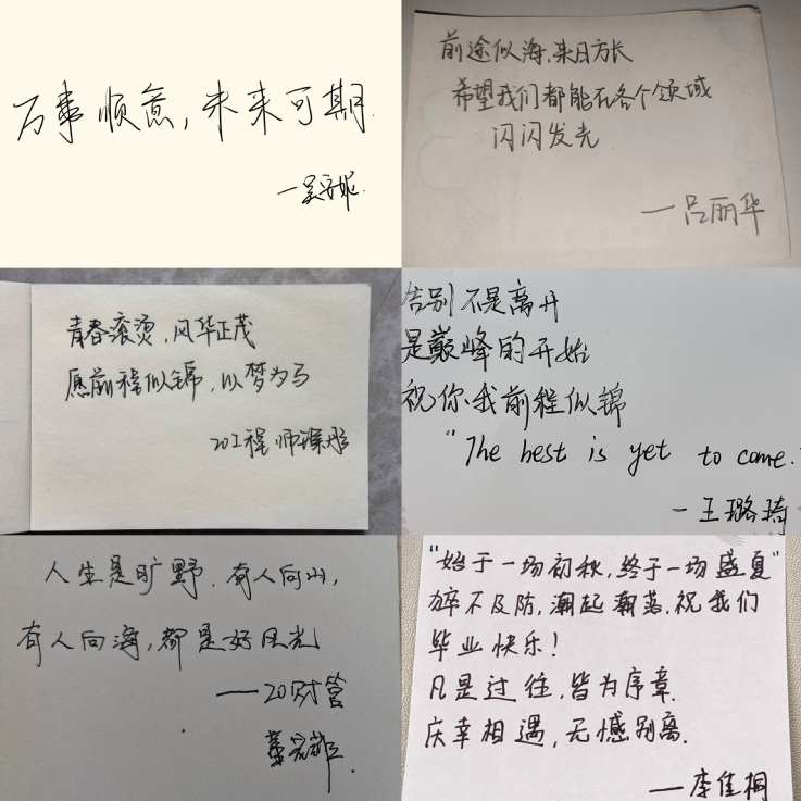 在支部大会上,毕业生党员们围绕“毕业寄语话未来”这一主题,畅谈了自己对未来的规划和期望。他们在卡片上或分享自己的职业规划,或畅谈自己的人生理想,或表达对母校的感激之情。一句句真挚的寄语,不仅展示了毕业生党员们的风采和才华,也激励着在场的每一个人为梦想而努力奋斗。