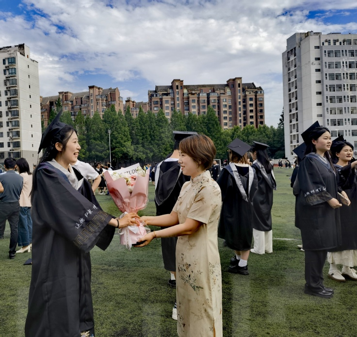在庄严而温馨的气氛中,毕业生党员们为辛勤付出的老师们送上了鲜花和祝福。一束束鲜花承载着学生们的感激之情,也代表着他们对老师无私奉献的深深敬意。老师们纷纷表示,这些鲜花不仅是对他们工作的肯定,更是对学生们成长的期待和祝福。