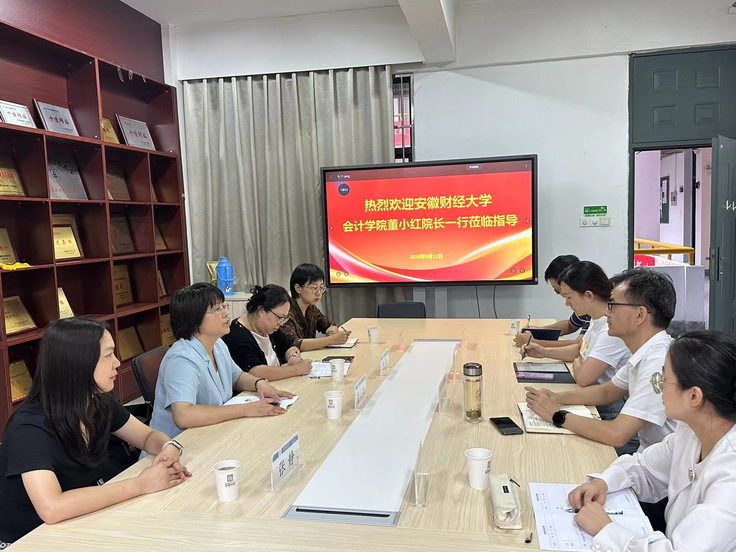 彭志胜对董小红一行来学院调研交流表示欢迎,并简要介绍了学院的发展历程、专业设置、师资力量、科学研究与服务社会以及学科特色等情况。章蓓蓓详细介绍了学院硕士点建设、研究生培养和管理等情况。董小红对学院的热情接待表示感谢,并简要介绍了安徽财经大学会计学院的发展历程、学科建设、研究生教育等情况。双方围绕会计学和审计学研究生教育,就学位点建设、研究生专业教育中心设置与管理、毕业要求、案例大赛等方面开展了热烈交流研讨。