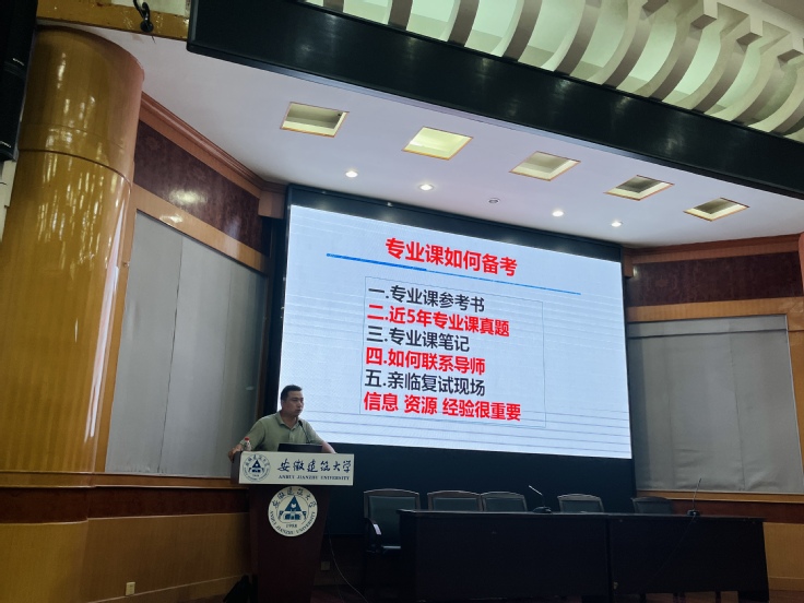 本网讯 为帮助2022级学生更好的了解考研形势,明确考研目标,掌握备考方法,提前做好学业规划,9月23日,经管学院邀请安徽新文道考研在建树楼三楼报告厅举办考研与学业规划指导专题讲座,来自经管学院和公管学院相关专业约100余名有考研意向的学生参加了讲座。