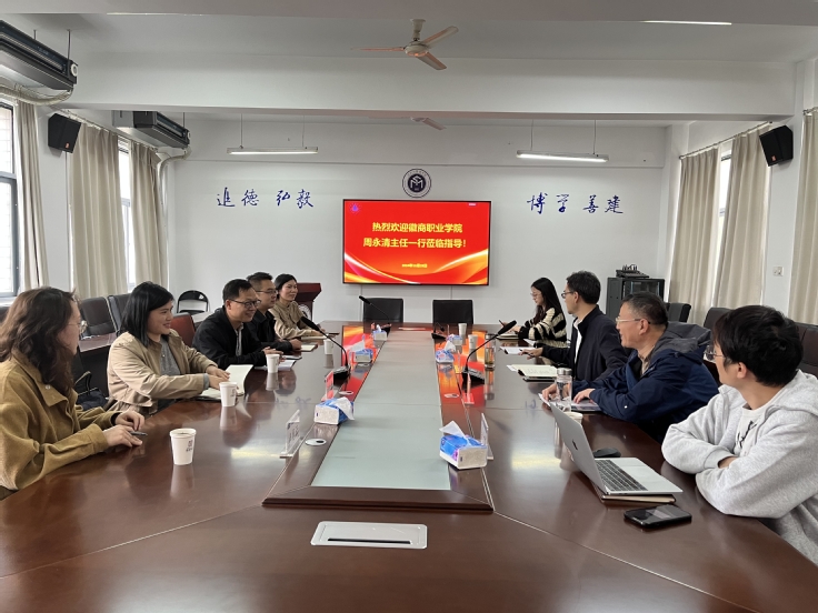本网讯 10月29日,徽商职业学院商务管理系周永清主任一行来我院调研交流。学院院长彭志胜、财会系主任周健生、副主任徐奕红、学院团委副书记余大纬、教务员唐静等参加会议。会议由彭志胜主持。