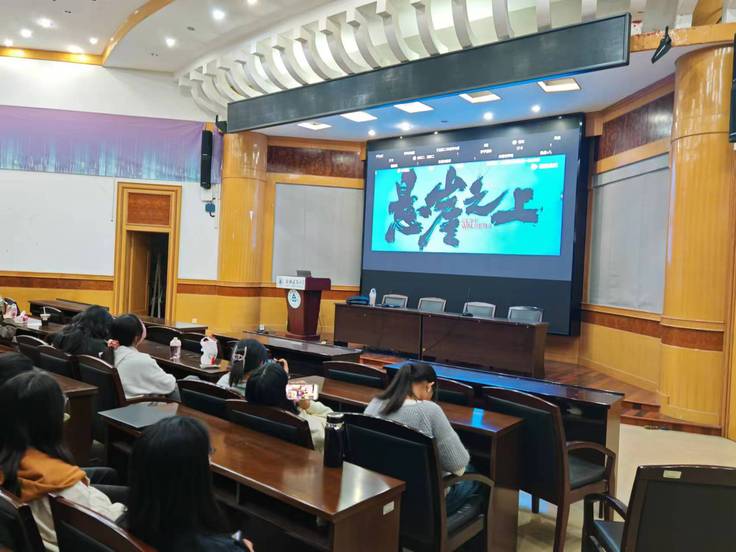本网讯 为更好加强思想政治教育,培养学生爱国情怀。11月8日,安徽省“光影庆华诞”优秀影片进高校主题展映展播走进经管学院,为学生们带来了一场视觉与精神的双重盛宴。本次活动在建树楼3楼报告厅举行,120余名同学参与了观影。