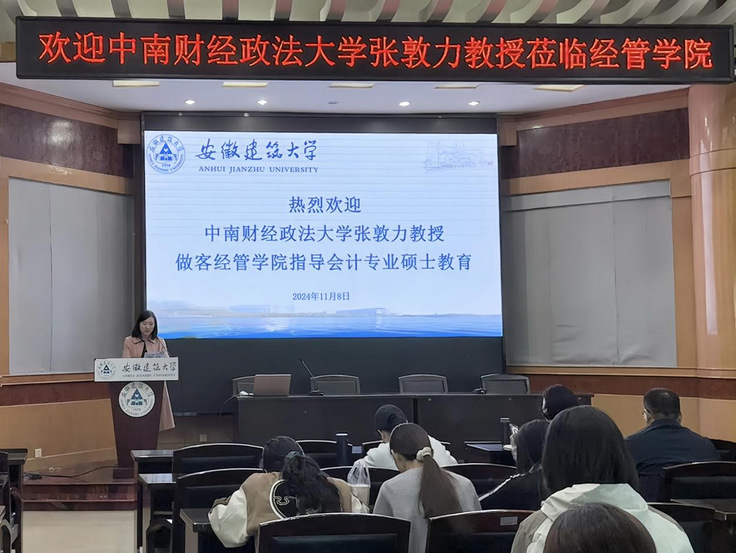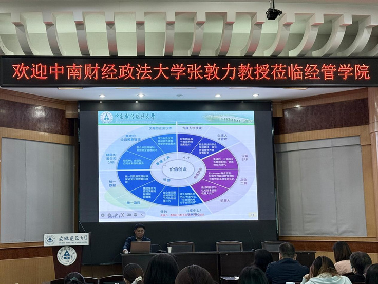 本网讯 11月8日,中南财经政法大学会计学院博士生导师、全国会计专业硕士(MPAcc)教学指导委员会委员张敦力教授应邀到经管学院举办“数智时代财务转型的新要求”专题讲座。讲座由经管学院副院长章蓓蓓主持,学院教师、硕士研究生共80余人参加。