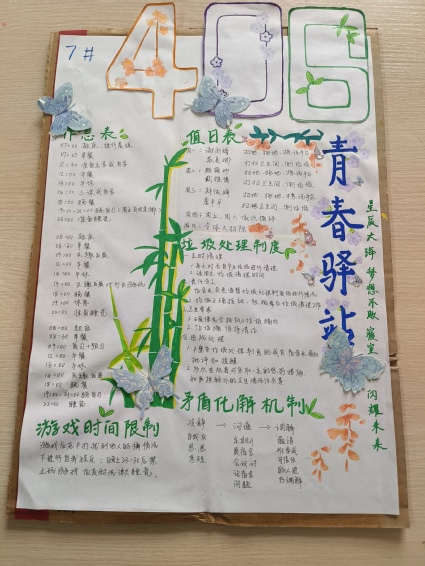 寝室成员根据公约要求,精心制作了各式海报。有的以深邃的星空为背景,星星闪烁,营造出梦幻而温馨的氛围;有的则是全手绘的海报,画中可爱的卡通人物形象色彩鲜艳,洋溢着青春活力;还有的采用极简风格,清新大方,给人一目了然的感觉。丰富多彩的海报内容不仅展示了同学们的创新思维与艺术才华,更体现出寝室成员们在共同维护宿舍和谐氛围中所付出的努力。