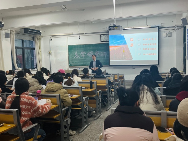 本网讯 为助力学院财会专业2026届考研学生更好地明确考研目标,掌握备考方法,12月18日,经管学院在建树楼314教室举办了财会专业考研专题讲座,讲座特邀合肥乐学喵考研校长柴老师作为主讲嘉宾,财会专业近90名学生参加讲座。