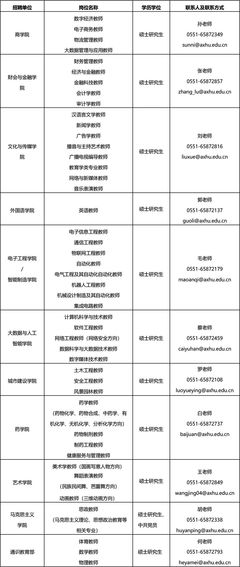 3.联系方式: 电话:0551-65872027、0551-65872019(赵老师) 邮箱:xinhuahr@axhu.for-shanghai.com 学校官网:https://axhu.for-shanghai.com/ 学校地址:安徽省合肥市望江西路555号。
