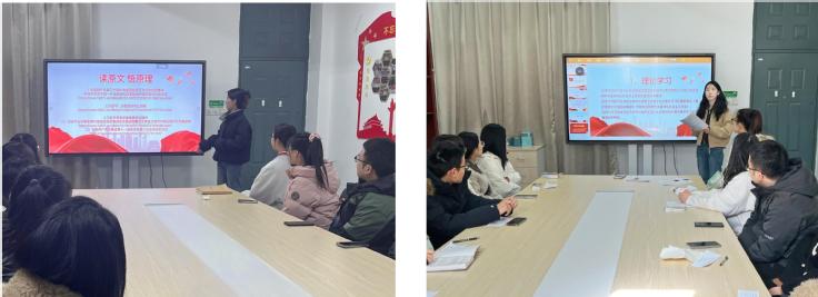 谈体会,话心声。交流讨论环节,研究生党员们积极发言,结合自身工作实际与学习感悟展开了热烈讨论。党员蔡思慧提出,应用好用活新媒体平台,开展内容丰富、形式多样的网上学习活动,提高党建工作的影响力和覆盖面;党员温泽清分享了研究生如何提升科创意识、把握学科前沿问题,并表示将积极响应号召、紧跟时代步伐,努力为建设科技强国贡献自己的力量。