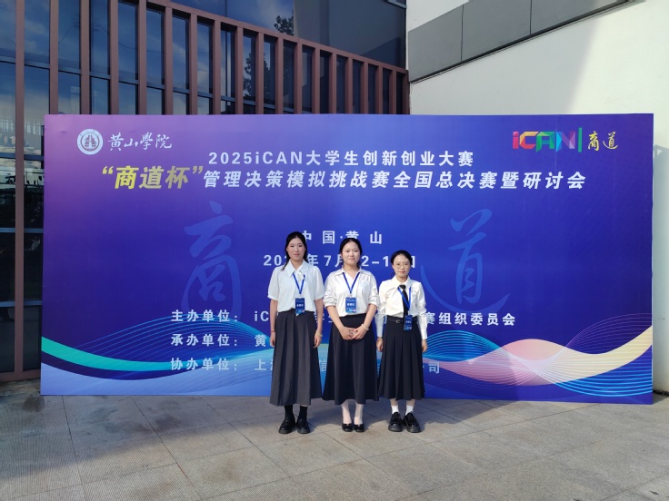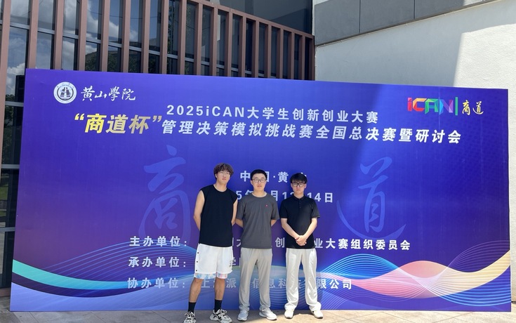 本网讯 7月14日晚,2025iCAN大学生创新创业大赛“商道杯”管理决策模拟挑战赛全国总决赛在黄山学院圆满落幕。我校学子张雨、李志慧、王佳慧组成的“练习生小队”获得全国总决赛二等奖,范颖、申雨欣、戴典格组成的“新颖阁”和张有权、陈永智、汤斌组成的“拉啦队”获全国总决赛三等奖。iCAN大学生创新创业大赛是鼓励原创精神,培养创新思维,提升实践能力的大学生综合性创新赛事,自2007年发起至今,得到了广大青年学生的热爱。2010年,iCAN大赛获批《教育部、财政部关于批准2010年度大学生竞赛资助项目的通知》大学生竞赛资助项目。2023年,iCAN大赛入选《全国普通高校大学生竞赛分析报告》竞赛目录,编号54。