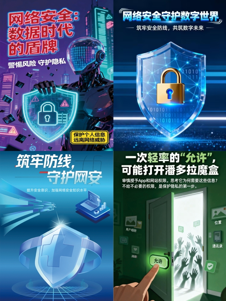 为激发学生对网络安全的主动思考,学院发起原创海报设计活动,得到全院学子热烈响应。同学们将网络安全知识与艺术创意深度融合,有的以漫画形式还原 “虚假购物”等典型场景,揭露诈骗套路;有的用对比色块搭配警示标语,强调 “保护个人信息” 的重要性。经过专业评审,多幅优秀作品获奖、在走廊、公众号、微博等渠道集中展示,不仅成为校园里的“安全风景线”,更以直观生动的方式让网络安全理念深入人心,带动全院形成 “学安全、懂安全” 的浓厚氛围。