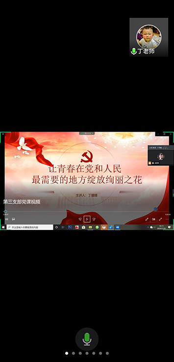 支部书记在微党课中要求,要把英雄的中国人民在抗疫中表现出的不怕困难、敢于胜利的斗争精神融入自己的奋斗前程,要把爱国情、强国志、报国行自觉融入实现中华民族伟大复兴的奋斗之中,为祖国建设添砖加瓦,在实现伟大梦想的时代洪流中绽放青春。(作者:丁媛媛  吴明轩;审稿:胡志龙)