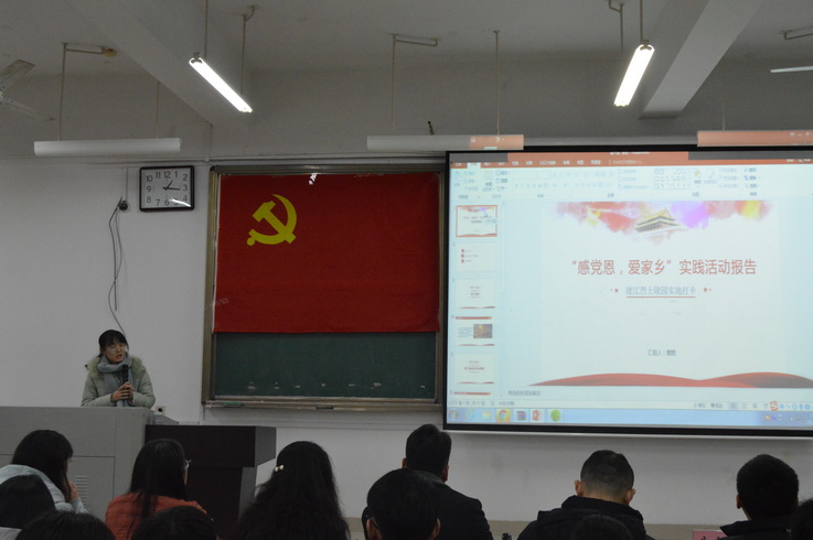 在评选表彰大会上,各支部党员代表通过视频、PPT、演讲等形式,述说家乡革命史,喜看家乡新变化,充分展现对家乡的热爱,对党的深情。最终,评选出一等奖1名,二等奖2名,三等奖3名,优秀奖6名,第三学生党支部和第四学生党支部获得优秀组织奖。主题实践活动历时将近半年,活动使广大学生党员拓宽了视野,扩大了知识面,增长了见识,提高了实践能力,增强了责任担当意识,为在将来的工作学习中切实发挥模范带头作用打下了扎实的基础。(文、图:丁媛媛;审稿:胡志龙)