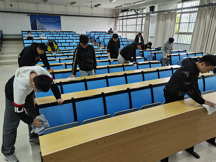 全体积极分子还进行了实践活动,对东辅楼教室进行了打扫,课桌进行卫生清理。