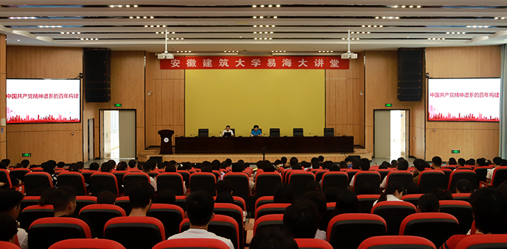 本网讯  为深入开展党史教育活动,6月2日,安徽大学马克思主义学院李明教授应邀做客易海大讲堂,在实验综合楼二楼报告厅作了一场题为“中国共产党精神谱系的百年构建”的学术报告。报告会由校党委副书记吕萍主持,党委宣传部主办,环能学院承办,环能学院全体教师、学生党员和积极分子400余人聆听报告会。