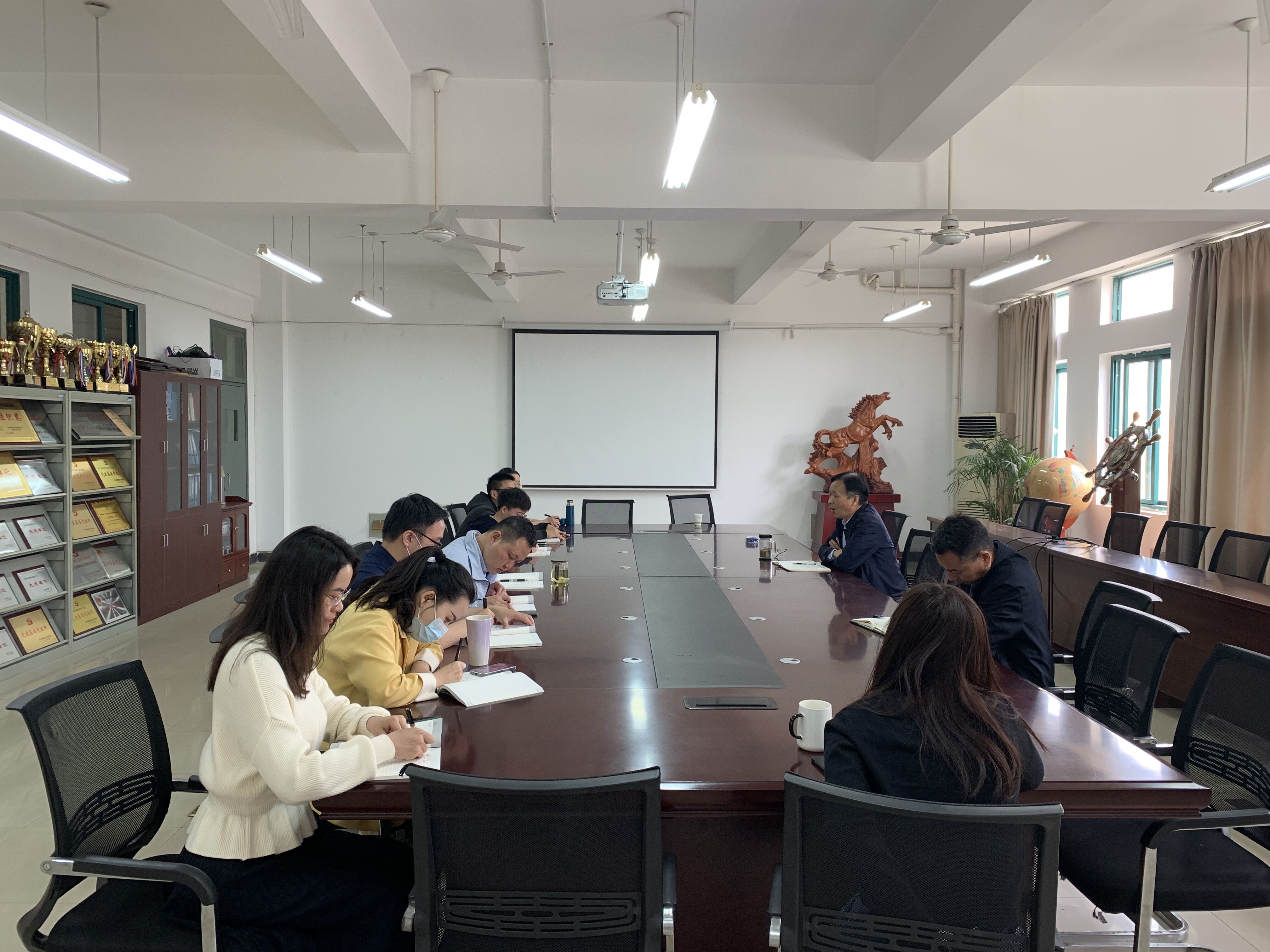 4月25日下午,环能学院召开专题布置会,环能学院班子成员与全体辅导员参会。学院党委书记戴前宏传达4月20日省教育厅召开的教育系统疫情防控视频会的会议精神,并就进一步落实严格校园封闭管理等工作作出安排部署。党委副书记胡志龙对学校《关于开好“抗疫情、勇担当”主题班会的通知》进行了解读,并对召开主题班会进行具体部署。