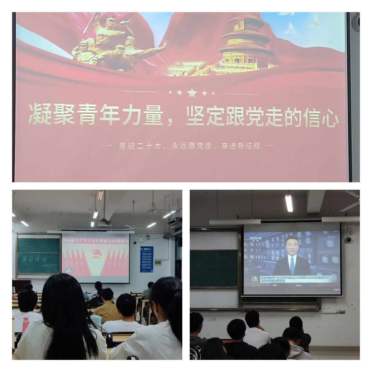 在五四青年节和中国共产主义青年团成立100周年即将到来之际,习近平总书记到中国人民大学考察调研,出席庆祝中国共产主义青年团成立100周年大会并发表重要讲话,对广大青年提出殷切期望。近日2021级环境工程和给排水专业各团支部开展了凝聚青年力量,坚定跟党走的信心专题学习会。会上播放习近平总书记到中国人民大学调研视频和出席庆祝中国共产主义青年团成立100周年大会并发表重要讲话视频,在观看视频后,各团支部团员在辅导员带领下结合近期阅读学习《习近平与大学生朋友们》开展本次专题学习会体会分享。大家表示作为新时代的中国青年,我们生逢其时当奋斗其时,通过深入学习习近平总书记重要讲话精神,牢记党的教诲,坚定不移听党话、跟党走,将学习与实践结合起来,在学思进取中展现青春奋发有为的精彩