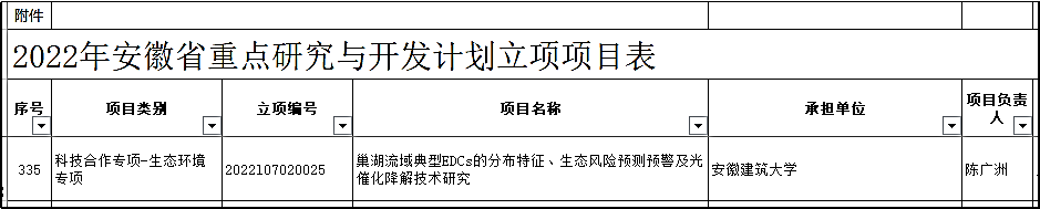 本网讯 近日,2022年度安徽省重点研发计划项目立项通知下发。环能学院资源科学系陈广洲教授获得了2022年安徽省重点研发计划项目(生态环境专项):巢湖流域典型EDCs的分布特征、生态风险预测预警及光催化降解技术研究(2022l07020025)。