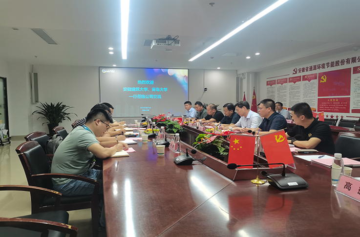 本网讯 8月19日,校党委副书记、校长黄显怀,校党委常委、副校长蔡国军带队赴安徽省通源环境节能股份有限公司开展调研交流,青岛大学修宗明教授受邀参加,安徽省通源环境节能股份有限公司董事长杨明热情接待了黄显怀一行。