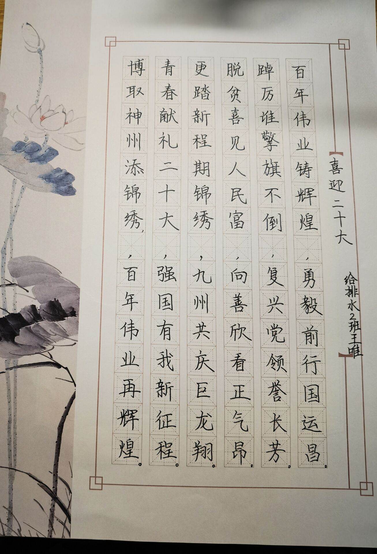 本网讯 翰墨颂盛世,丹青歌盛会。为迎接党的二十大胜利召开,进一步营造积极向上、多姿多彩的校园文化氛围近日,环能学院举办了为期五天的“喜迎二十大·翰墨颂党恩”主题书画比赛。