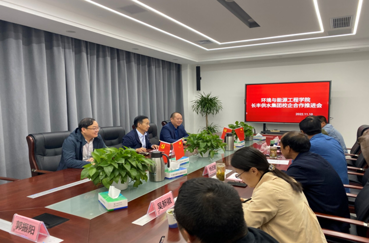 最后,学院党委书记戴前宏对长丰供水集团一直以来关心和支持学校的发展表示感谢,他指出,希望双方以此次校企合作为契机,在人才输送、人员培训、学生实习实践以及党支部“党建共建”等方面开展深度合作并尽快落地。同时,就环能学院校友分会的成立对程军校友发出了诚挚邀请。(作者:杨厚云;审稿:谢发之)