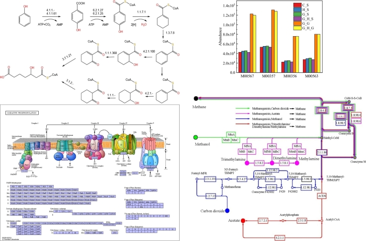 针对上述问题,何春华博士联合合肥工业大学王伟教授采用颗粒活性炭耦合外源氢快速构建优势的SAO-HM产甲烷路径,并利用宏基因组学解析其潜在机制。研究发现颗粒活性炭表面富集了大量的乙酸氧化菌和嗜氢产甲烷菌,在颗粒活性炭表面SAO-HM成为优势的产甲烷路径,并进一步揭示了颗粒活性炭耦合外源氢构建优势的SAO-HM路径并强化了种间电子传递强化有毒难降解有机物生物转化的内在机制。