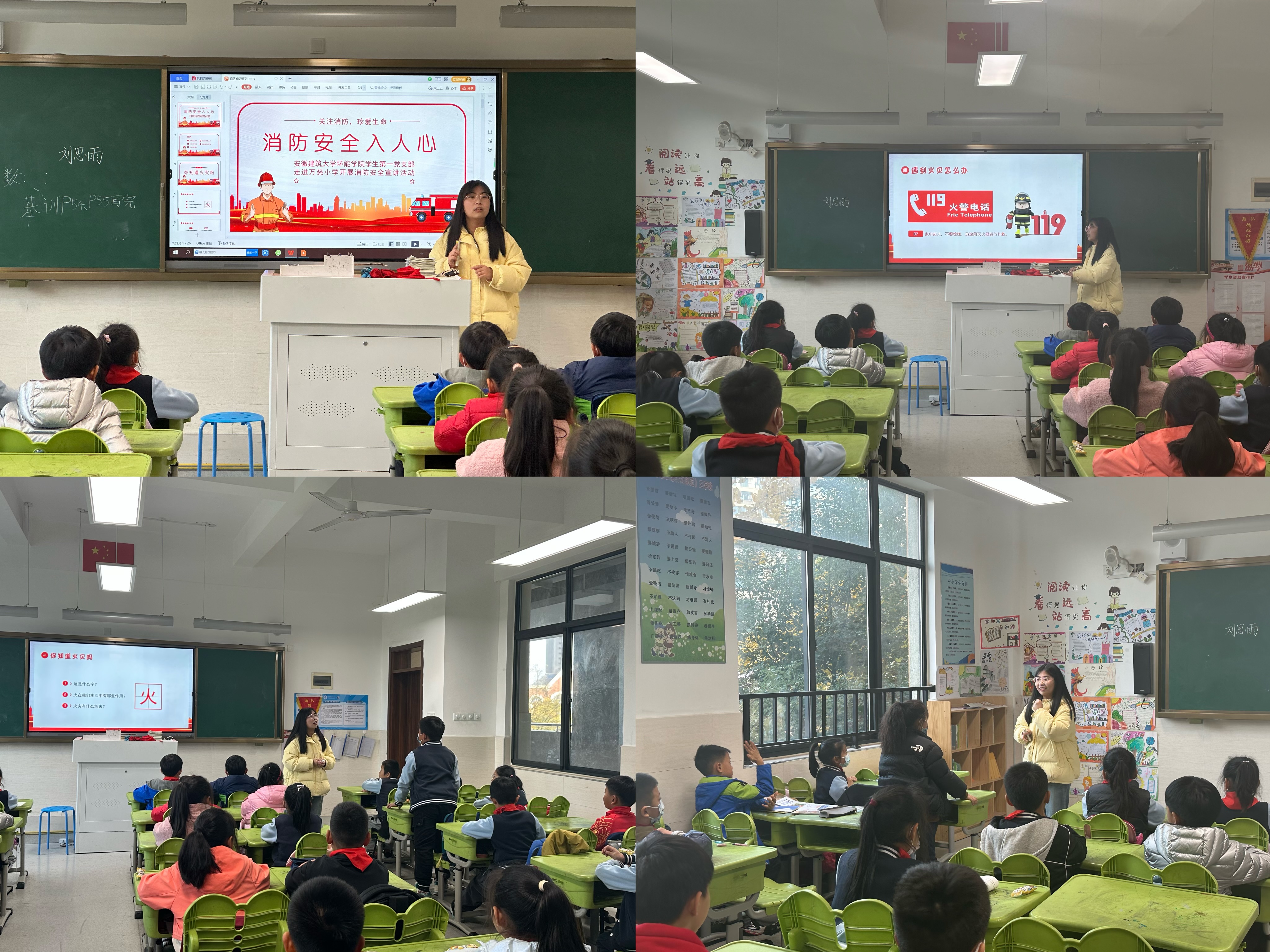 本网讯 11月是消防安全月,为普及消防安全知识,11月27日,环能学院学生第一党支部走进合肥师范附小教育集团万慈小学三(2)中队开展消防安全宣讲活动。