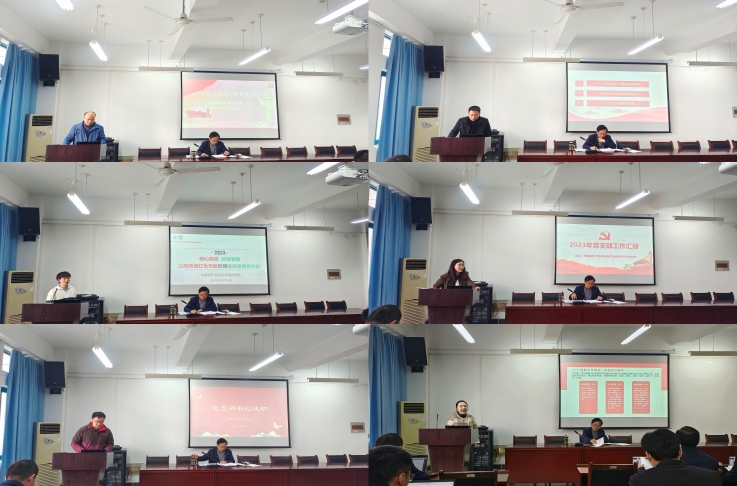 会上,学院14位党支部书记依次进行述职汇报,聚焦2023年度抓基层党建工作第一责任人的履职情况,深入剖析了履职中存在差距和不足,提出了今后工作目标与思路。各支部书记表示在过去一年始终坚持以习近平新时代中国特色社会主义思想为指导,组织支部党员认真学习宣传贯彻党的二十大精神,扎实开展主题教育,学懂弄通习近平新时代中国特色社会主义思想,引导支部党员做到坚决拥护“两个确立”,坚决做到“两个维护”。支部书记积极发挥党员先锋模范作用和提升党支部的战斗堡垒作用,教师党支部书记围绕学院事业发展,落实立德树人根本任务,坚持支部党建与学院学科专业建设相融合,教育管理监督教师党员,增强教师党员服务师生的责任感和使命感;各学生党支部重视经常性学习教育,规范日常党员管理,加强思想政治引领,积极开展“过政治生日”“寻找最美笔记”“多彩研途”主题党日和志愿服务等特色活动,不断提升学生党员意识和党性修养。