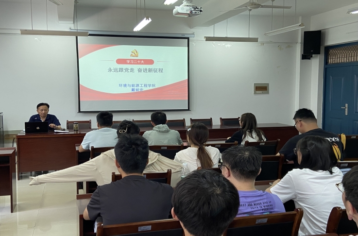 环境与能源工程学院党委书记戴前宏以“永远跟党走 奋进新征程”为主题,围绕过去十年的伟大变革、新时代新征程中国共产党的使命任务等十五个方面内容,带领预备党员学习党的二十大报告,要求全体学员不忘初心,牢记使命,树立起全心全意为人民服务的理念。学院党委副书记、院长谢发之就预备党员的教育、考察和转正进行授课,详细介绍了预备党员转正手续和流程,点明预备期间学生党员的具体努力方向。党委组织员何杨结合《中国共产党纪律处分条例》,以《严守选派纪律建设和美乡村》作为案例,指出无论何时何地,党员同志既要遵规守纪,更要担当作为。马克思主义学院雷雪芹老师以《中国化时代化马克思主义》为题,解读习近平新时代中国特色社会主义思想把马克思主义基本原理同中国具体实际相结合、同中华优秀传统文化相结合,以原创性理论标注了马克思主义发展的新高度,实现了对中国特色社会主义建设规律认识的新跃升,指明了中国式现代化道路的新图景。此外,全体学员还集中观看了纪录片《全面从严治党》、《永远吹冲锋号》。
