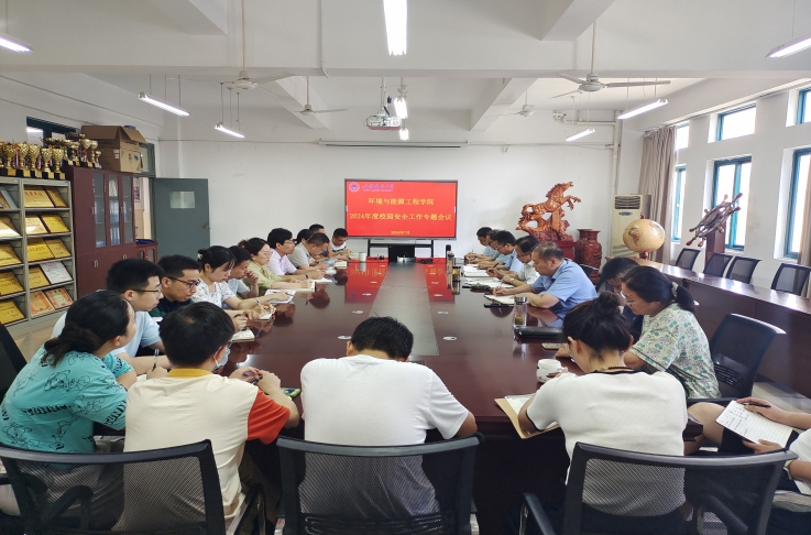 本网讯 7月5日下午,环能学院在徽文楼212会议室召开2024年度校园安全工作专题会议,学院领导班子成员、各专业系(中心)负责人、辅导员共20余人参加,会议由院长谢发之主持。