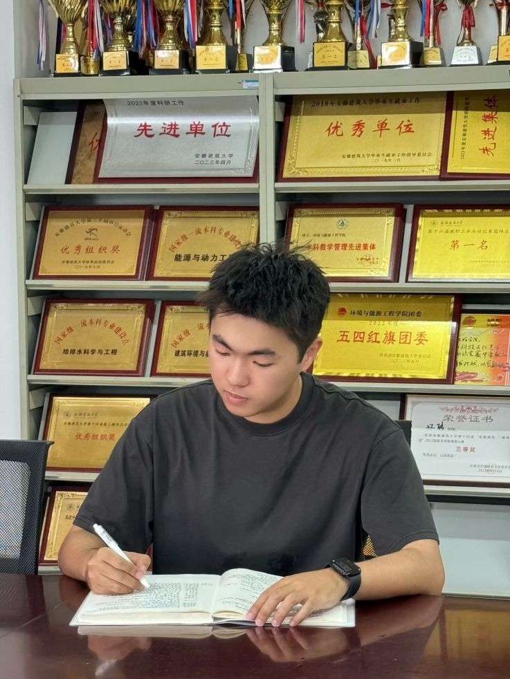 作为一名共产党员和学生干部,周正涵展现出“多面手”的素质和能力。他不仅获得了第六届“深水杯”全国三等奖,还荣获2022-2023年度一等奖学金、“长丰供水”社会奖学金等多项荣誉。同时,他被评为学校“优秀共产党员”、“优秀研究生干部”、“三好研究生”及“优秀团干”。