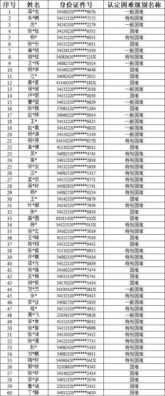 根据校学工部网站9月4日《关于做好2024-2025学年度家庭经济困难学生认定工作的通知》要求,对环境与能源工程学院拟入库的蒋*龙等377名学生进行公示。公示时间为5个工作日(2024年9月14日——9月23日)。