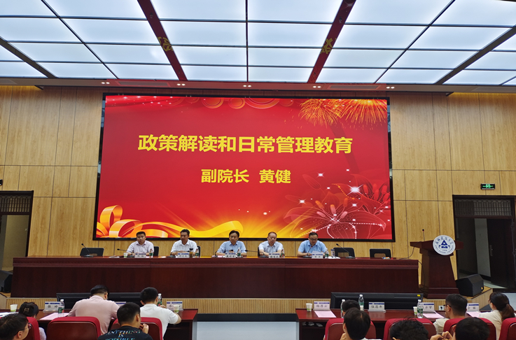 随后,学院副书记胡志龙通过分享学术不端被撤销学位典型案例,进一步明确学术规范标准,他号召全体研究生在学术研究中要遵循学术规范和道德准则,不抄袭、不剽窃、不造假。同时,严格要求自己,遵守学校的规章制度,遵守社会公德和职业道德,为未来的学术生涯和社会生活打下坚实的基础。学院副院长黄健深入解读了学校、学院研究生培养方面的相关文件,要求同学们认真研读,清晰各项毕业条件和要求,科学合理制定科研目标和学习计划,充实研究生阶段的学习和生活。